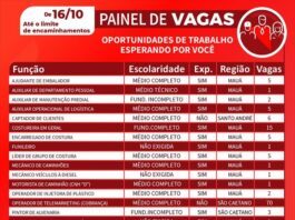 Centro Público de Trabalho e Renda de Mauá registra 129 vagas...