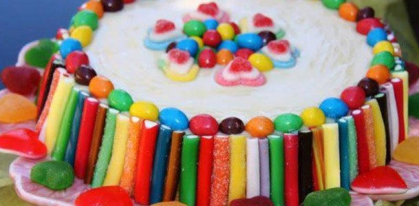 Barrar a lateral com o creme de chocolate e dispor as gomas.