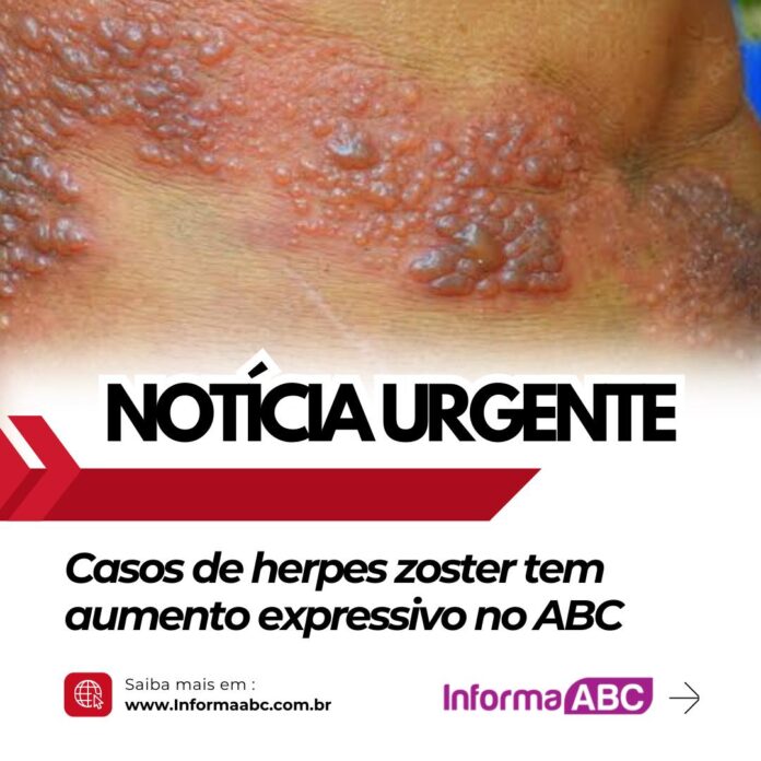 Nos últimos três meses, o ABC registrou um aumento expressivo nos casos de herpes zoster, também conhecido como cobreiro. Mais de 22 casos foram contabilizados no primeiro trimestre de 2024, representando 26,82% do total de ocorrências do ano passado, que somaram 82. Especialistas mostram preocupação, uma vez que a vacina contra a doença não é oferecida pelo Sistema Único de Saúde (SUS).