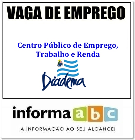 Centro Público de Emprego, Trabalho e Renda (CPETR) de Diadema está com 124 vagas de emprego, sendo que as com maior número é de atendente de lanchonete e auxiliar de limpeza, com 15, seguido de empregado doméstico nos serviços gerais, com 10 e recepcionista atendente, que possui 6 colocações.