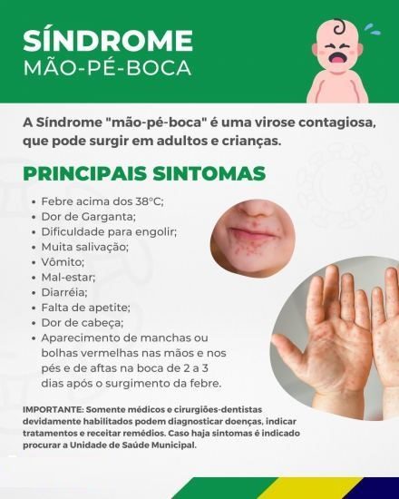 A Síndrome da Mão-Pé-Boca é comum em crianças entre 6 meses até 5 anos de idade, sendo uma infecção viral contagiosa causada por um Enterovírus chamado #Coxsackie A.