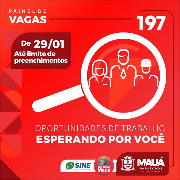 O Centro Público de Trabalho e Renda de Mauá, uma iniciativa do Ministério do Trabalho em parceria com a Prefeitura, por intermédio da Secretaria de Trabalho, Renda e Empreendedorismo, oferece 197 vagas de trabalho na cidade e também em Santo André, São Caetano do Sul, São Bernardo do Campo, Ribeirão Pires e São Paulo. Apenas em janeiro, o CPTR de Mauá já apresentou 874 novas vagas de trabalho.