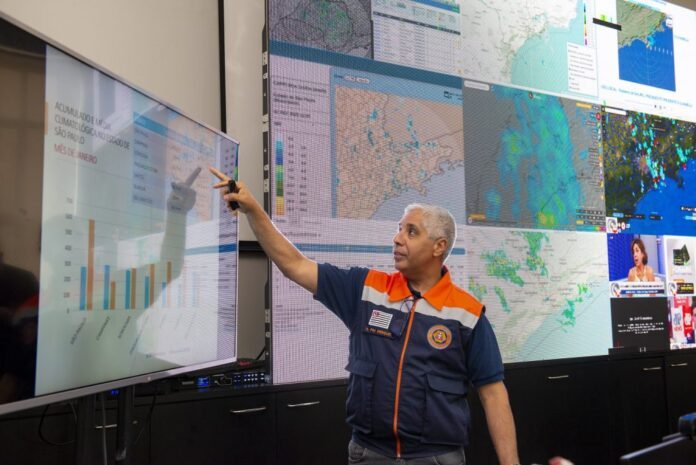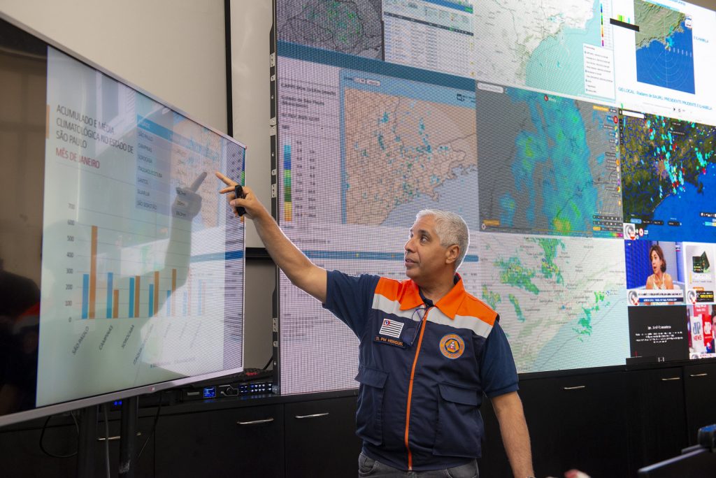 O governador Tarcísio de Freitas acompanhou na manhã deste domingo (2) a ação do Centro de Gerenciamento de Emergências (CGE) da Defesa Civil de São Paulo, que atende famílias atingidas pelas fortes chuvas do fim de semana.