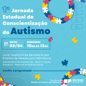 No âmbito das celebrações do Dia Mundial de Conscientização sobre o Autismo, nesta terça-feira (2), o Governo de São Paulo, através da Secretaria de Estado Direitos da Pessoa com Deficiência (SEDPcD), promove a 1ª Jornada Estadual de Conscientização sobre o Autismo na capital. O evento será uma oportunidade para reunir especialistas e autoridades no assunto, oferecendo palestras que visam fomentar discussões e expandir o conhecimento sobre o Transtorno do Espectro Autista (TEA).