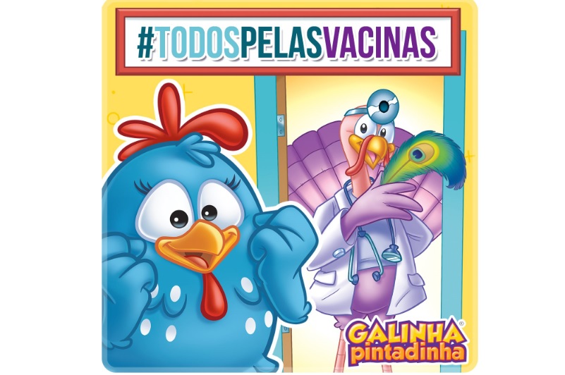 O vídeo de 30 segundos, que foi produzido pela Agência Z515, será veiculado nos canais de televisão, portais e redes sociais até o dia 31 de janeiro. A ação publicitária mostra a personagem Galinha Pintadinha, do desenho animado, recebendo sua primeira dose da vacina.