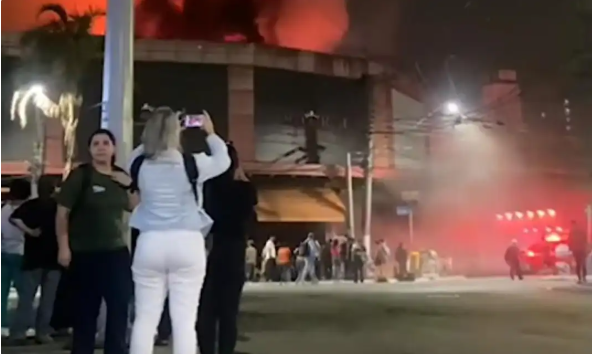 Um incêndio de grandes proporções atinge um ponto comercial no centro de Santo André, o Rei do Real, na esquina da Rua General Glicério, na noite desta segunda-feira (2).