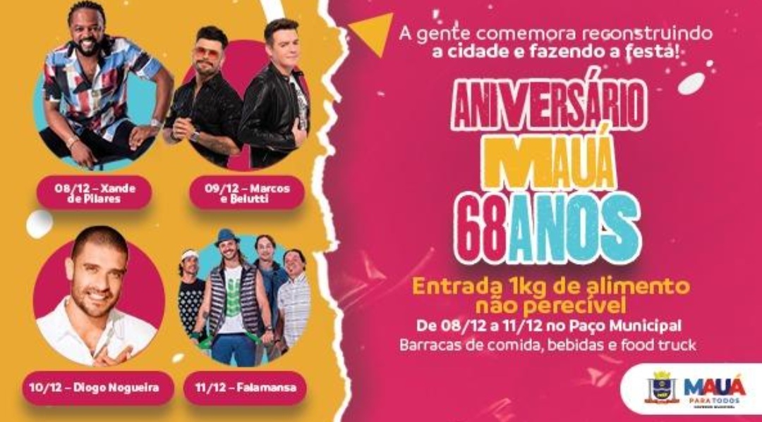 A Prefeitura preparou uma série de atividades para celebrar o aniversário de 68 anos de Mauá. Além de decoração natalina, a qual inclui pela primeira vez a montagem de uma Vila Natalina no Parque da Juventude, o governo entregará UBS (Unidade Básica de Saúde) revitalizada, mutirão de castração, shows e evento esportivo.