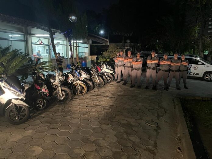 Tendo em vista a grande quantidade de motocicletas, com descarga livre, sem identificação e em alta velocidade, inclusive na contramão de direção, sendo pilotadas por condutores sem capacete com o objetivo de causar desordem nas vias públicas devido a data festiva, viaturas policias foram posicionadas em pontos estratégicos do município na tentativa de inibir tais delitos, estratégia esta que resultou em vinte oito motocicletas e dois automóveis irregulares removidos ao pátio.