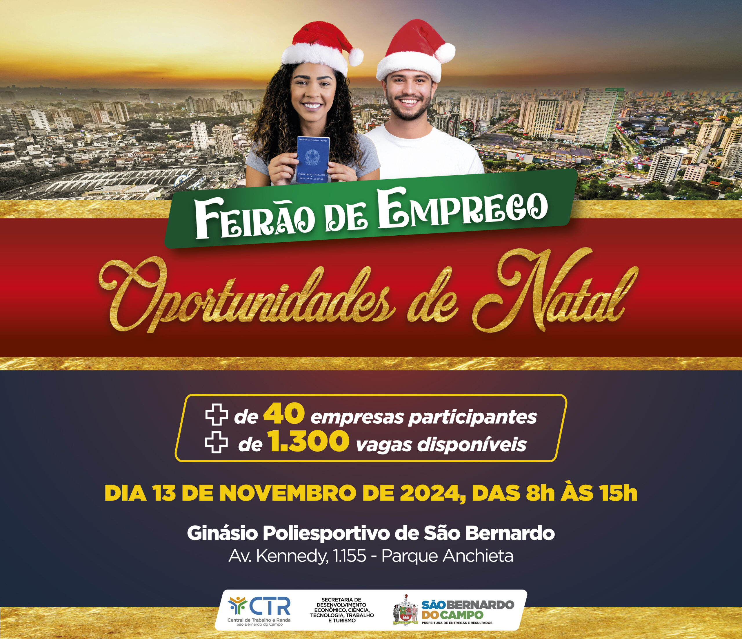 Na próxima quarta-feira, das 8h às 15h, o Poliesportivo vai receber mais uma edição do Feirão do Emprego!
