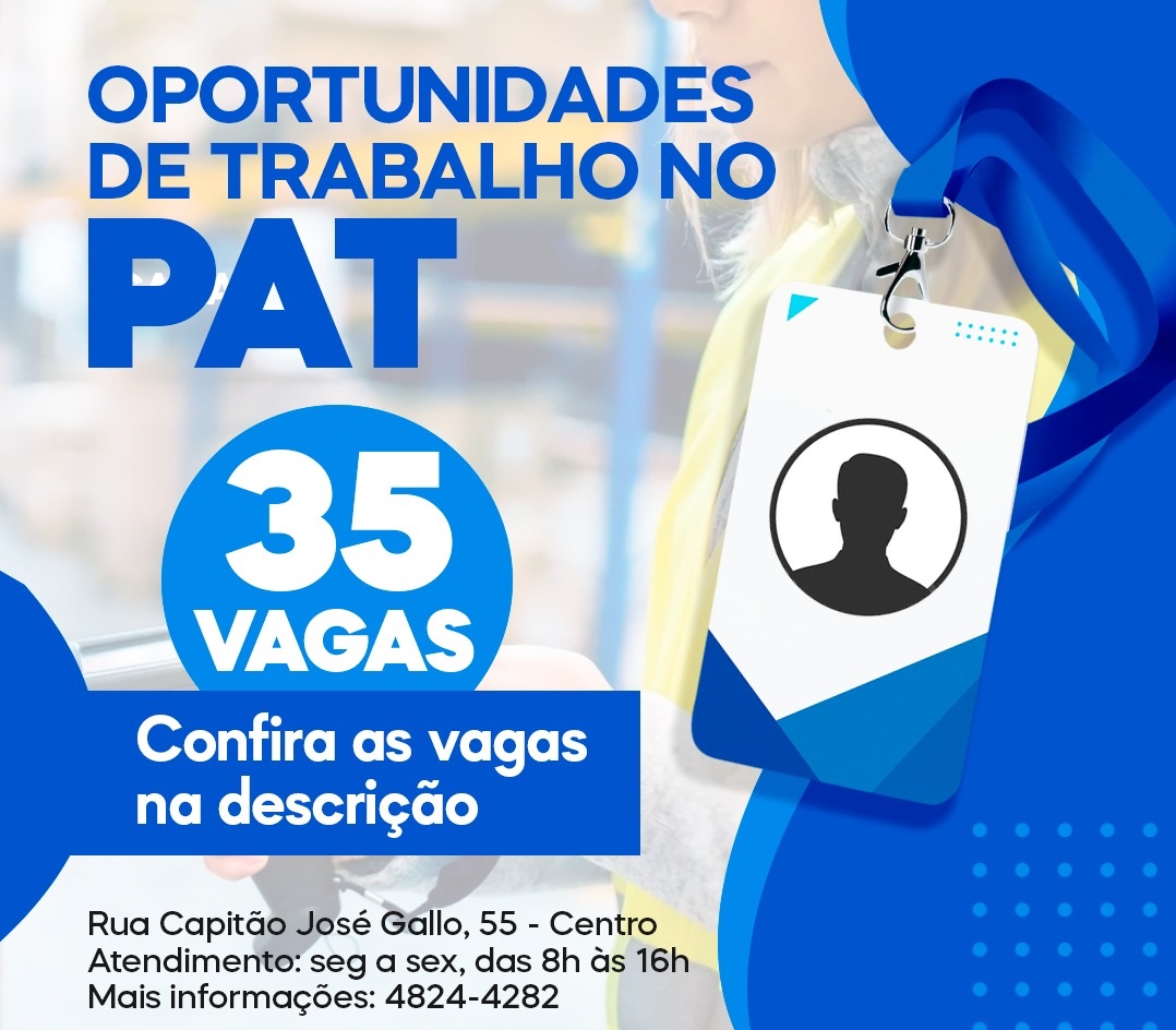 O PAT (Posto de Atendimento ao Trabalhador) de Ribeirão Pires comunica que estão abertas 35 oportunidades de emprego para a próxima semana. Os interessados devem se deslocar ao local e realizar a candidatura. Confira a lista: