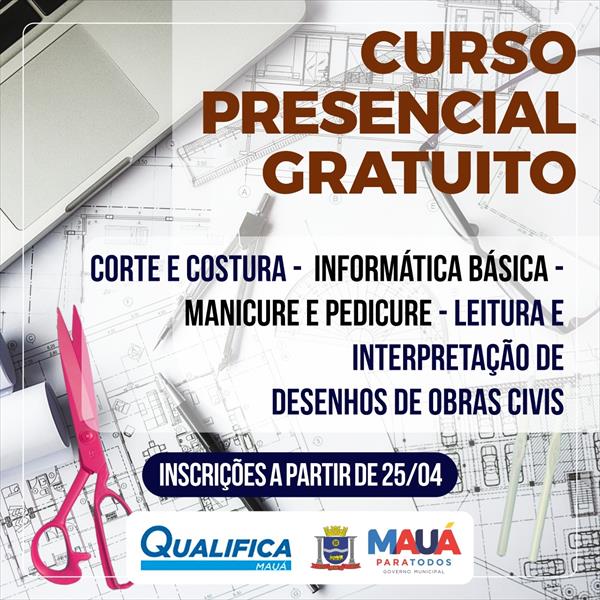 A Prefeitura segue abrindo oportunidades para o aprimoramento profissional de quem vive na cidade. Por isso, o programa ‘Qualifica Mauá’ abre a partir de segunda-feira (25/04), as inscrições para cursos de Corte e Costura, Informática Básica, Manicure e Pedicure e Leitura e Interpretação de Desenhos de Obras Civis, que têm o objetivo de promover formação e capacitação. O início das aulas está previsto para 10 de maio.