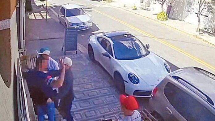 Nas imagens gravadas, os três homens abordam o motorista do Porsche na calçada, quando ele estava ao lado do carro. Eles o revistam e pegam objetos antes de entrarem no carro e fugirem.