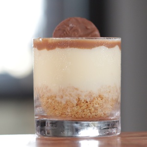 Em copinhos ou potinhos, faça uma camada de farofa de biscoito e, por cima, disponha o creme