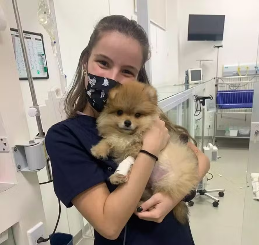 Funcionários da clínica onde a jovem trabalha informaram ao g1 que veterinária passou por cirurgia e se recupera na Unidade de Terapia Intensiva (UTI). Ela foi atingida no queixo, mas o tiro não teve impacto no maxilar.