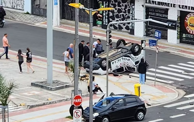 “Uma viatura da Polícia Militar e um carro de passeio se envolveram em um acidente de trânsito no centro de Santo André, na região metropolitana de São Paulo, neste domingo (10). A colisão aconteceu durante o atendimento a uma ocorrência, quando a viatura se deslocava com sinais luminosos e sonoros ativos. O caso foi registrado como colisão no 2° Distrito Policial de Santo André, que solicitou perícia para o local.”
